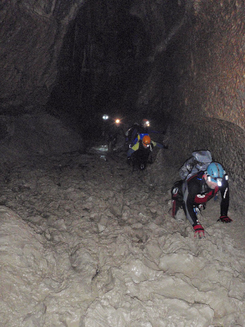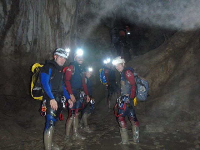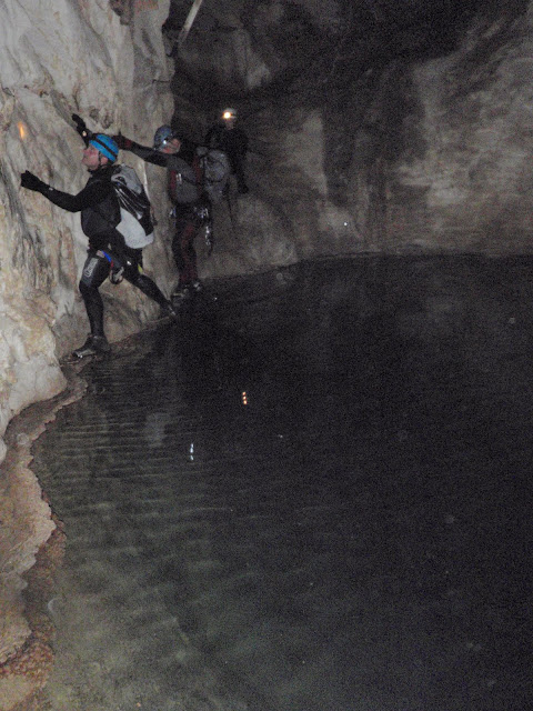 Solo decir que la travesía fue estupenda. Como siempre, agua bastante fría, la gran estalagmita espectacular, los gours vacíos, pero inmensos y la galería del barro....ahora vereis las fotos.